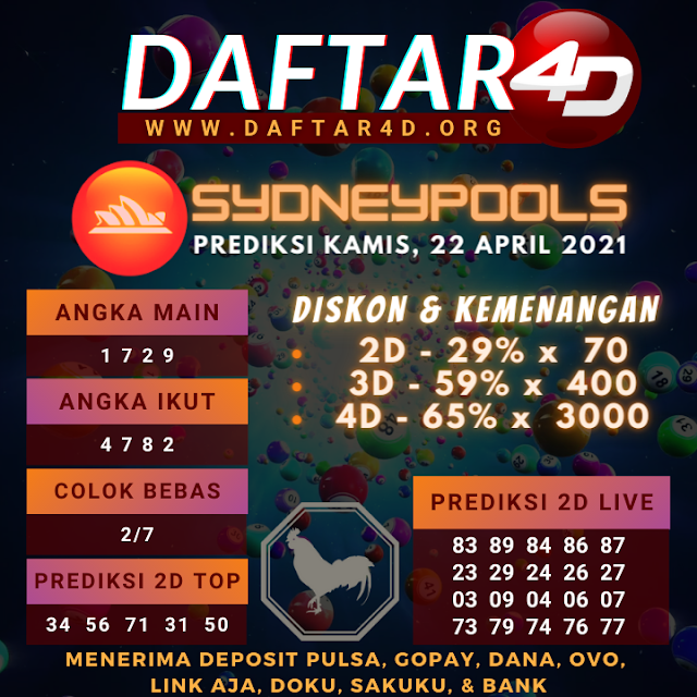 Togel Sidney menjadi populer di kalangan pemain togel. Cara bermainnya pun cukup sederhana. Pilihlah 4 angka dari 0000 hingga 9999 dan tunggu hasil undian pada setiap hari Senin, Rabu, Kamis, Sabtu, dan Minggu. Jika angka yang anda pilih keluar sebagai hasil undian, anda berpotensi mendapatkan hadiah yang menggiurkan.
